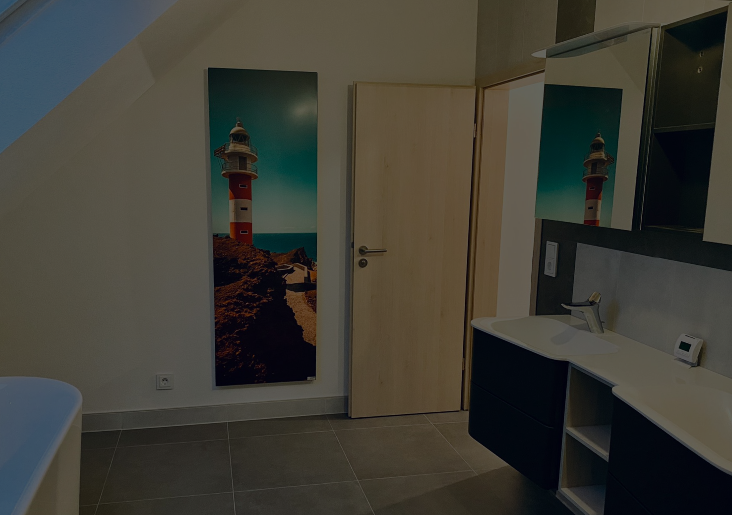 Infrarotflachheizkörper in Standard weiß, mit Wunschfarbe, mit natürlichem Dekor oder mit Ihrem Wunschbild.