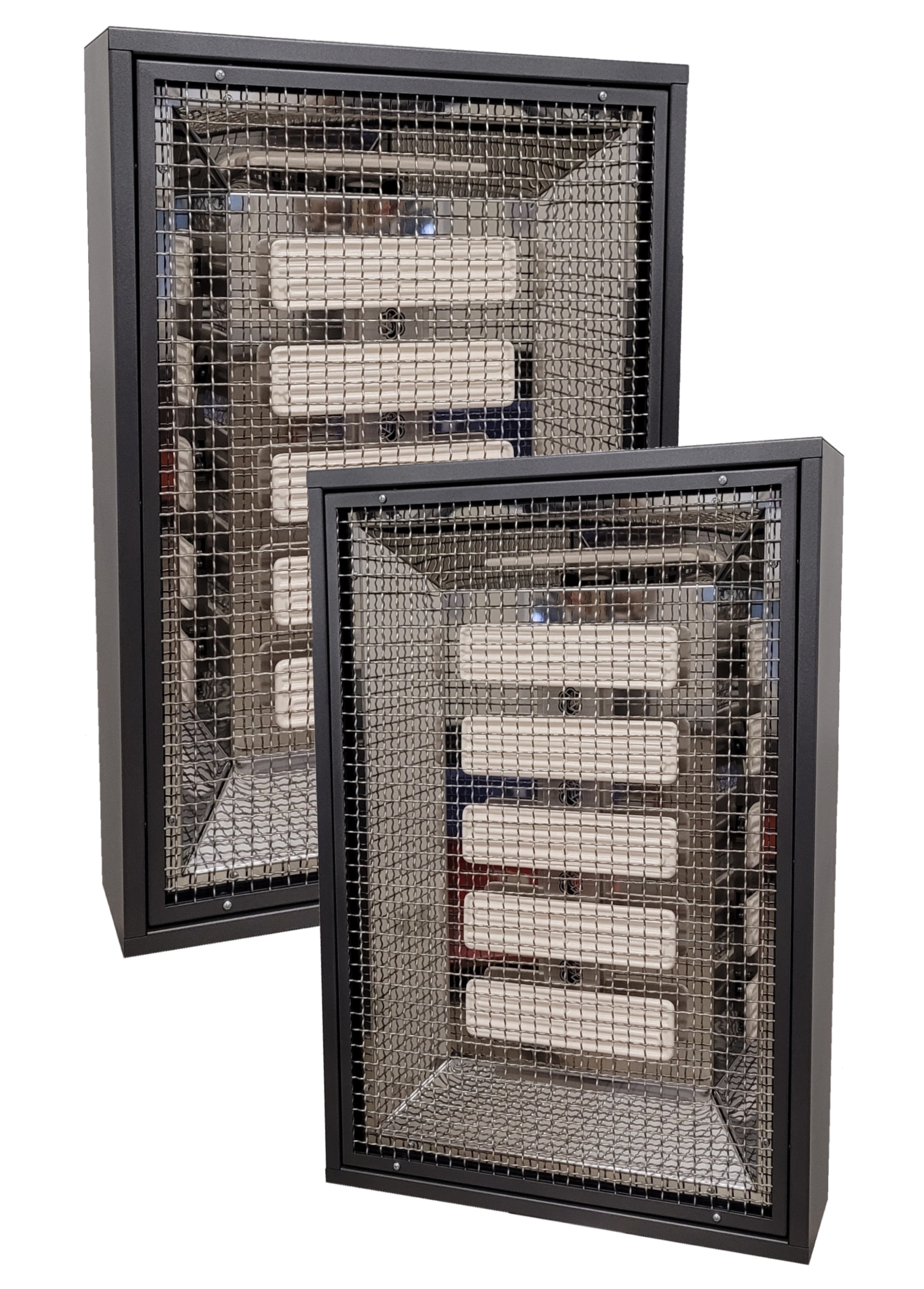 Infrarot-Industrieprodukte, darunter Heizstrahler für große Hallen und Werkstätten, Veranstaltungshallen und auch Fußheizungen.